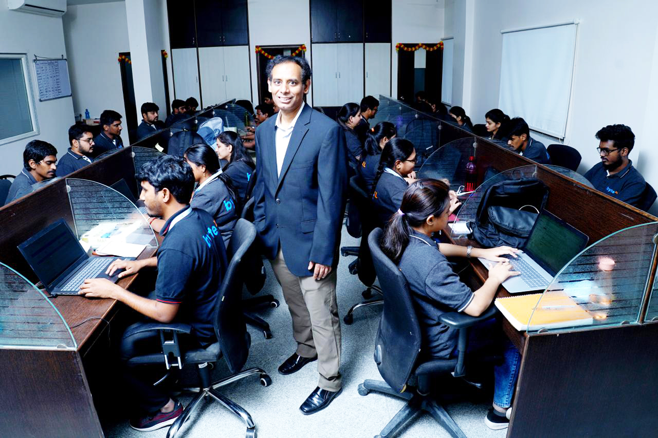 Photo: Our CEO, Karun Tadepalli interacting with students in the lab.